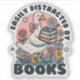 This charming sticker features a whimsical white goose carrying a stack of books, surrounded by a field of daisies and a cozy iced coffee. With the playful phrase "Easily Distracted by Books" and a soft pastel pink color palette, this design is the perfect accessory for any bibliophile, librarian, or student.
