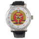 Wear a part of the deep dark past of Germany with this elegant East Germany wriswatch. The wristwatch has the old coat of arms of the German Democratic Republic on a white background with dark red numerals. The watch may be customized: style, colours, size, etc. For more itema like this, visit: www.zazzle.com/azorean*.