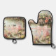 Easter oven mitt and pot holder set. Featuring faux pink bow and bunny rabbits. Add your own name and get baking! Perfect for the baker in your household