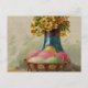 Easter Basket Eggs Flowers Antique Holiday Postcard