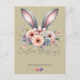 This customizable postcard not only captures the essence of the season but allows you to infuse it with your own heartfelt wishes. Adorned with enchanting floral patterns and the whimsy of bunny rabbit ears, this postcard is a visual symphony of joy, renewal, and the magic that Easter brings. What makes it truly special is the ability to add your family name, turning it into a unique and memorable keepsake.