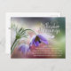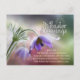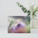 Inspirational scripture Easter Blessings postcard depicts purple flowers with a green and pink background. It features Bible Verse John 3:16, "For God so loved the world that he gave his one and only Son, that whoever believes in him shall not perish but have eternal life."~