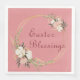 Easter Blessings Paper Napkin Floral Tableware, light maroon background with floral wreath pink, white and gold circle. In darker maroon has "Easter Blessings." Happy Easter supplies!