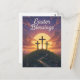 Easter Blessings Three Crosses Purple Sunset Postcard