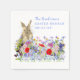 Easter brunch and egg hunt floral custom napkins with cute Easter bunny and colourful watercolor wildflower meadow. Ideal for spring garden party. Easy to personalize cornflower blue typography script so you can add a family name. whimsical boho wildflower meadow design perfect for a spring garden party Easter egg hunt. Original artwork by artist Catherine Sweetman