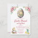 easter brunch and egg hunt, pink floral chickens invitation