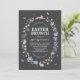 Invite your guests to an Easter Brunch with this folk art floral motif invitation in shades of purple, plum, pink and green on a chalkboard look. Choose your own accent colour on the reverse!