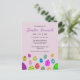 Colourful Easter eggs on a pink invitation to an Easter brunch and egg hunt.
