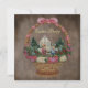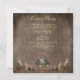 Elegant vintage rustic country Easter Party Easter Brunch and Easter egg hunt invitations with a cute and colourful whimsical vintage ornate Easter basket ornament with pink ribbons, beautiful spring flowers, bunnies in their Sunday best and a pretty church / chapel on a stylish shabby chic dark brown washed out weathered wood grain effect background with pretty yellow text. On the reverse is a cute Easter bunny family. Classy, trendy, fashionable modern invites with an antique look. All of the text can be easily customized to meet your needs and you can change the font style, colour and size of font if you desire. If you need any assistance customizing your product please contact me through my store and I will be happy to help. PLEASE NOTE: All invites on Zazzle have flat printed images.