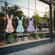 Bring a touch of charm to your windows with our delightful Bunny Trio Window Cling. These three adorable bunnies in bright pink, blue, and purple are sure to add a fun, eye-catching element to any setting, whether it's a storefront, office, or home. Easily adjustable to fit your space, this durable cling is perfect for both indoor and outdoor use, making it a fantastic addition to your Easter or springtime decorations.