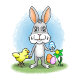 Easter bunny and the cute chicken holiday card