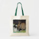These bags were super cute (I purchased 3). The material is more of a canvas look & feel. The colour of the bag is slightly off white, but the letters look exactly as pictured. I took 3 photos in different lighting. Would recommend! I liked how there was an option to choose the font and colour of the name. The words are legible and the colours are exactly as pictured.