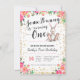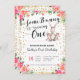Some Bunny is Turning One Birthday Invitation. Bunny Pink Floral Invitation.
