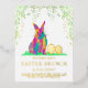 This beautiful modern gold foil watercolor cute colourful bunny rabbit and gold eggs Easter brunch and egg hunt gold foil invitation is a great way to spread springtime joy with your friends and family. Personalized gold, pink teal yellow purple and foliage themed Easter celebration invites to friends and family using the customize and easy to use template. Adorable easter bunny and eggs unique illustrations original artwork by artist Catherine Sweetman.