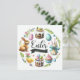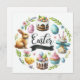 The image is a colourful and festive Easter-themed illustration. It features the following elements arranged in a circular layout: