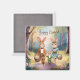 A charming and whimsical Easter magnet with a warm, personal touch. The watercolor style gives it a soft, ethereal quality, and the anthropomorphic bunny family adds a delightful narrative element.