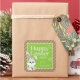 This 3 x 3 inch sticker illustrated a cute little bunny eating a carrot. With diagonal pink green stripes, this sticker will look so great on your Easter gifts, goody bags or favor bags. It is also available in blue/green strip.