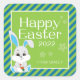 This 3 x 3 inch sticker illustrated a cute little bunny eating a carrot. With diagonal blue green stripes, this sticker will look so great on your Easter gifts, goody bags or favour bags. it is also available in pink/green strip.