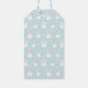 These adorable illustrated gift tags feature a pastel blue Easter bunny pattern with scattered doodle flowers. Perfect for cheerful spring gifting.