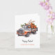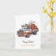 Easter bunny in rustic vintage truck greeting card. Rustic watercolors and lineart style cute bunny rabbit driving a retro vintage truck full of carrots. Personalized text with a lovely trendy script.
