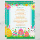Add your child's name to this customizable letter from the Easter Bunny. On the back is some fun questions for your child to answer. Cute pink, teal, yellow and green letter with Easter eggs, bunny, carrots, flowers i pastel colors.