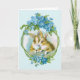 Featuring a cute vintage illustration of two bunny rabbits encircled with a Forget-Me-Not flower wreath.