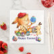A Colourful And Festive Paper Napkin For Luncheon or Dinner Parties. A Cute Bunny Painting Eggs