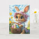 Easter Bunny Pink Bonnet Basket Eggs Card