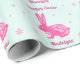 Easter Bunny Rabbit Daisies Pink Aqua Personalized Wrapping Paper