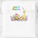 Easter bunny square shape sticker is shown with a festive Easter Bunny print with a Happy Easter text.