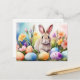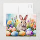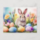 Easter Bunny with Spring Flowers, Painted Eggs Holiday Postcard