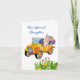 This Easter card has a Easter bunny in a vintage car, text reads " Our special daughter" in fancy script.