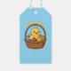 A festive gift tag illustration created in a "Vinyl Glossy" style. The image features a clean, dark brown outline and expressive block shadows with no extra texture.