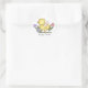 Cute country primitive artwork of a fluffy looking yellow chick, with a pretty pink bow. The baby chick is surrounded by colourful flowers and a painted Easter egg. Text below reads Happy Easter, and can be customized to read anything you want. Lovely Easter sticker great for the kids or as envelope seals for your Easter greeting cards.
