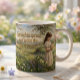 Celebrate the sweetness of spring with this tender children’s mug featuring a young girl holding a soft brown bunny in a blooming meadow. Filled with daisies, primroses, and pastel blossoms, the scene captures the joy and renewal of Easter in a gentle, storybook style.