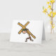 A Christian stick figure wearing a crown of thorns carries the Crucifix. Design is intended to thoughtfully show the message of the Easter Cross.