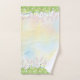 It was advertised as NAVY blue and the color sent was greenish blue. I am disappointed in this product. Quality and printing are great as are all my other orders. As you can see in picture the tea towel on right is perfect, hand towel not so much! Print was awesome and just as ordered