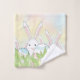 Tender pastel colours and spring palette create holiday mood and cartoon bunny makes this design cute. Happy egg hunt!