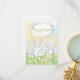 Tender pastel colours and spring palette create holiday mood and cartoon bunny makes this design cute.