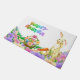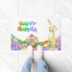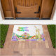 Easter doormat is shown with a festive Easter Bunny print with a Happy Easter text.