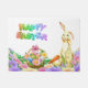 Easter doormat is shown with a festive Easter Bunny print with a Happy Easter text.
