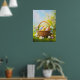 Great Easter Poster with a big easter egg and cute animals like an easter bunny or rabbit. Magical Fantasy Forest Floral Art with flowers and adorable animals.