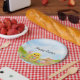 Bright spring colors and playful charm decorate these watercolor Easter paper plates, featuring a fluffy baby chick carrying a basket of colorful Easter eggs while a friendly bunny in a pink bowtie keeps watch nearby. Surrounded by blooming pastel tulips, the cheerful design captures the joyful spirit of the season, adding a festive and whimsical touch to Easter brunches, egg hunts, and spring celebrations.