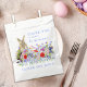 Easter egg hunt personalized family name thank you favour bag with cute Easter bunny and colourful watercolor wildflower meadow. Ideal for spring garden party favour bags and Easter egg hunt bags. Cornflower blue handwriting typography script with easy to use templates so you can add a family name. Simple modern minimalist design perfect for a spring garden party Easter egg hunt. Original artwork by artist Catherine Sweetman