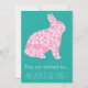 Parfait pour une fête de Pâques amusante ! Une invitation branchée, filante et élégante à une fête de Pâques pour adultes ou enfants ou à la chasse aux oeufs de Pâques. Cette invitation à la fête cool présente un lapin rose de Pâques à motifs et un texte et une couleur arrière - plan entièrement personnalisables.