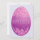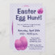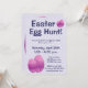 Easter egg hunt party invitations for kids. Custom invites for easter and kids birthdays. Personalizable announcement text and background colour. Girlie pastel pink background with white polka dot pattern. Childrens party template.
