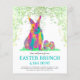 This colorful watercolor Easter invitation features a cute psychedelic rabbit surrounded by vibrant multicolored Easter eggs, making it perfect for an Easter brunch, Easter egg hunt, or spring party with family and friends. A cheerful way to share springtime joy and bring everyone together.