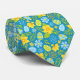 A Green, Teal And Yellow Colored Men's Necktie Designed With Easter Eggs And Yellow Daffodils