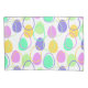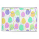 This pillowcase has a Easter design of eggs in purple, yellow, green, blue, and pink scattered about with their outlines.