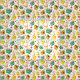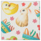 Easter fabric with cute and colourful baskets full of eggs, bright yellow chicks, and white bunny rabbits.
